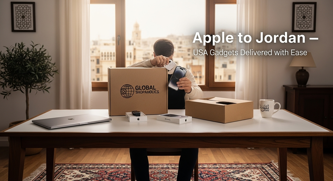 يستحق عشاق التكنولوجيا في الأردن الوصول المباشر إلى أفضل أجهزة Apple والإلكترونيات الأمريكية – دون عناء أو تأخير أو تكاليف باهظة. شحن Apple إلى الأردن مع Global Shopaholics يفتح لك آفاقًا جديدة. بفضل خبرتنا اللوجستية، وأسعارنا المرنة، وخدمة تجميع الطرود، ودعم العملاء المتميز، كل خطوة ستكون شفافة وبسيطة. انضم إلى آلاف العملاء الأردنيين الراضين الذين يتسوقون الآن من Apple USA عبر الإنترنت بثقة، واحصل على أجهزتهم المفضلة مُسلّمة إلى باب منزلك. رحلتك نحو تسوق دولي أكثر ذكاءً وسهولة تبدأ الآن
