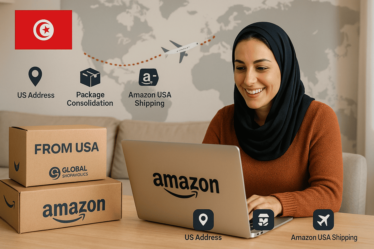 تسوق من الولايات المتحدة الأمريكية واشحن إلى تونس مع Global Shopaholics اليوم!