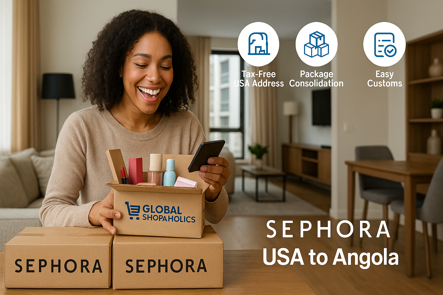Por que escolher a Global Shopaholics para envio da Sephora EUA para Angola?